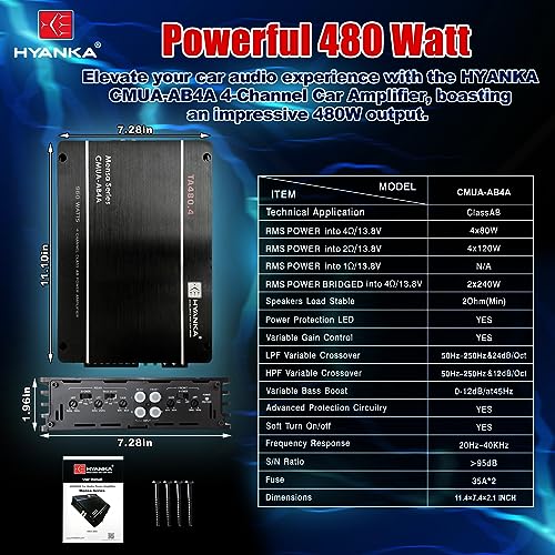 CMUA-AB4A | 480 Watt 4-Channel Class AB Car Amplifier