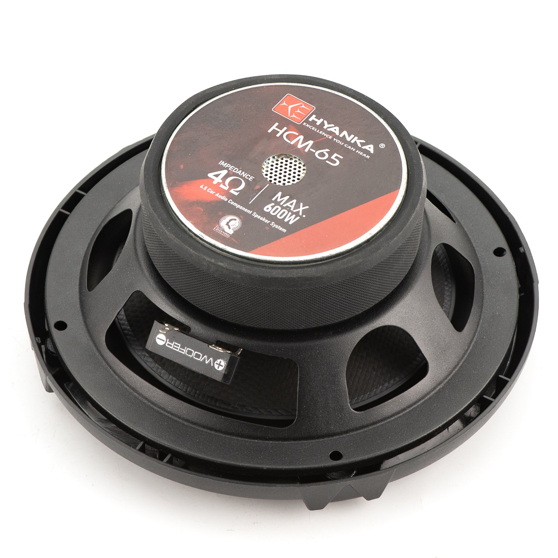 The HYANKA HCM-65 2-way car component speakers system has been carefully designed for perfection. The component sets include a pair of 6.5" mid-woofers, a pair of 1" tweeters, and a pair of 2-way crossovers. With a nominal impedance of 4 ohms and a maximum power handling of 600W, this kit has the resilience and power to bring your favorite tunes to life. The 6.5 car speakers mid-woofers are made with fiberglass cones and KSV dual-layer voice coils to ensure long-lasting, high-quality performance. The silk diaphragm tweeter provides excellent clarity and sparkling highs so you can feel every beat of your vehicle's reproduction. The included 2-way passive crossover gives you just the right frequencies for optimal sound. This component package is an excellent choice for the average everyday audiophile or the extreme pro-audio competitor.